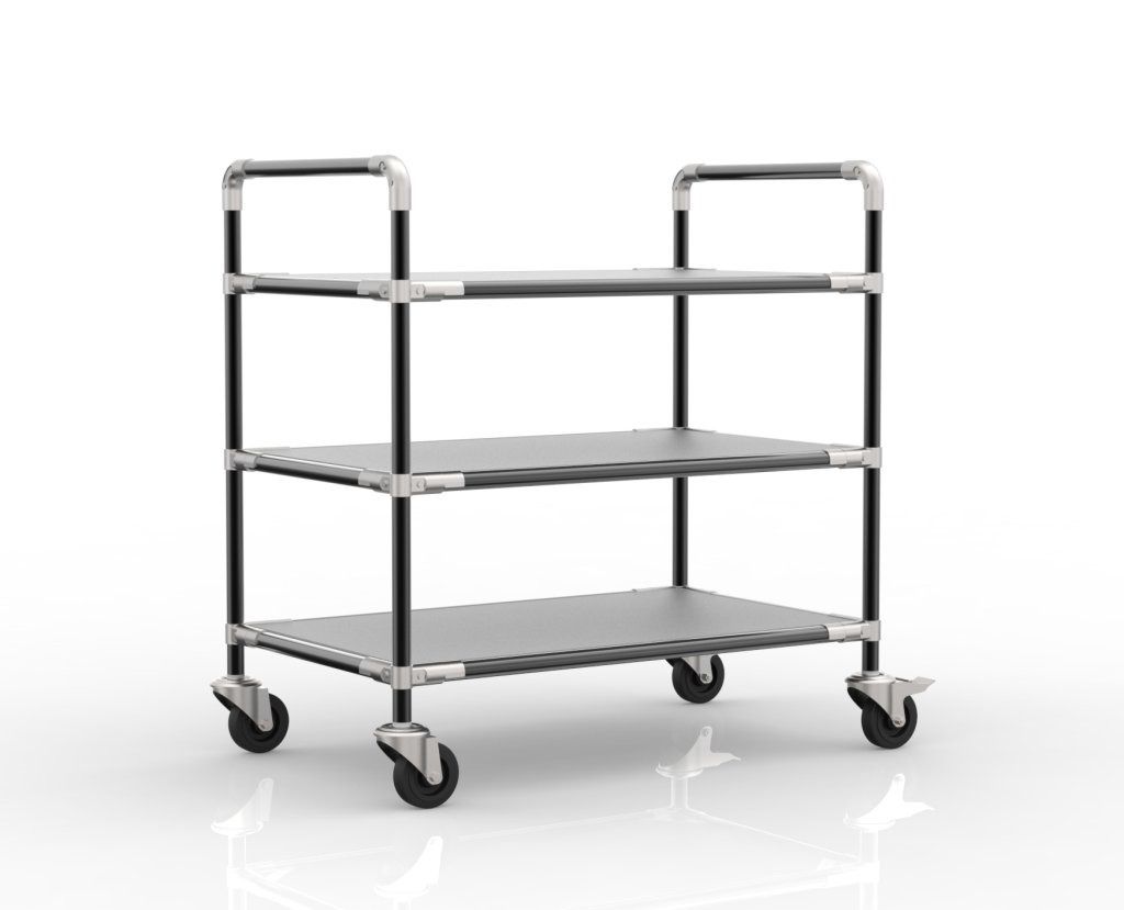 Antistatický policový vozík z trubkového stavebnicového systému je ideální volbou pro manipulaci se zbožím citlivým na elektrostatický výboj. Součástí vozíku je ESD lamino deska o tloušťce 18 mm. Rozměry 964 x 918 x 568 mm, průměr kolečka 100 mm.