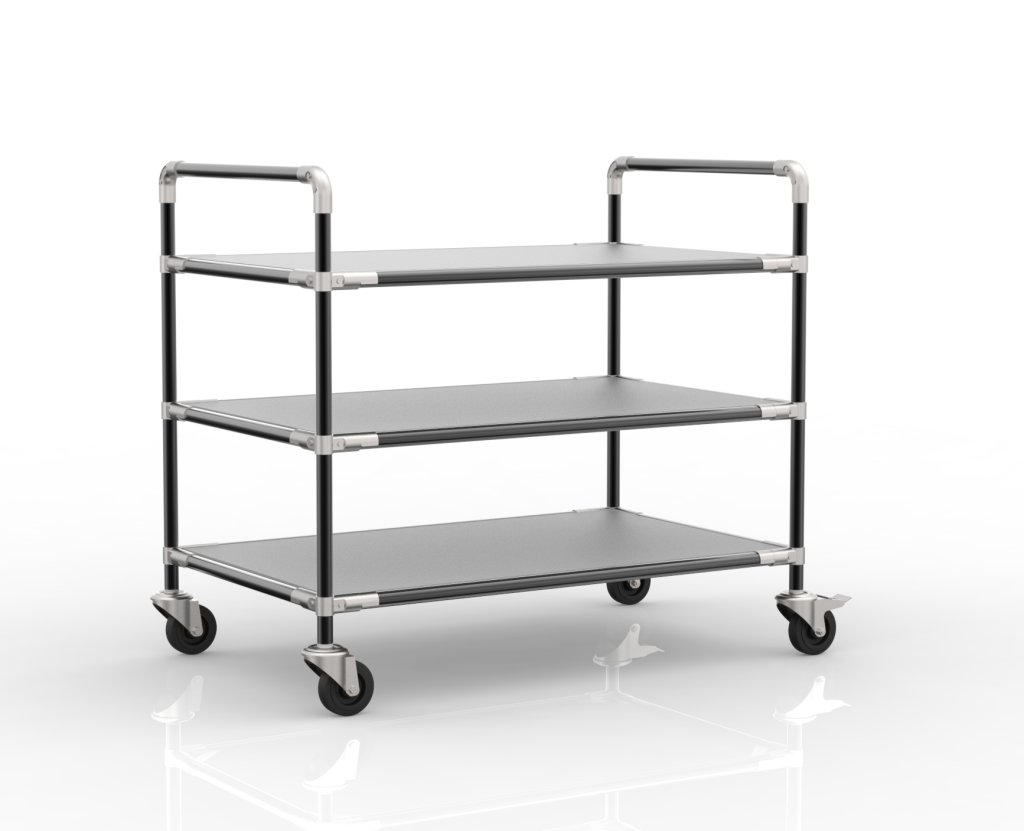 Antistatický policový vozík z trubkového stavebnicového systému je ideální volbou pro manipulaci se zbožím citlivým na elektrostatický výboj. Součástí vozíku je ESD lamino deska o tloušťce 18 mm. Rozměry 964 x 1068 x 768 mm, průměr kolečka 100 mm.