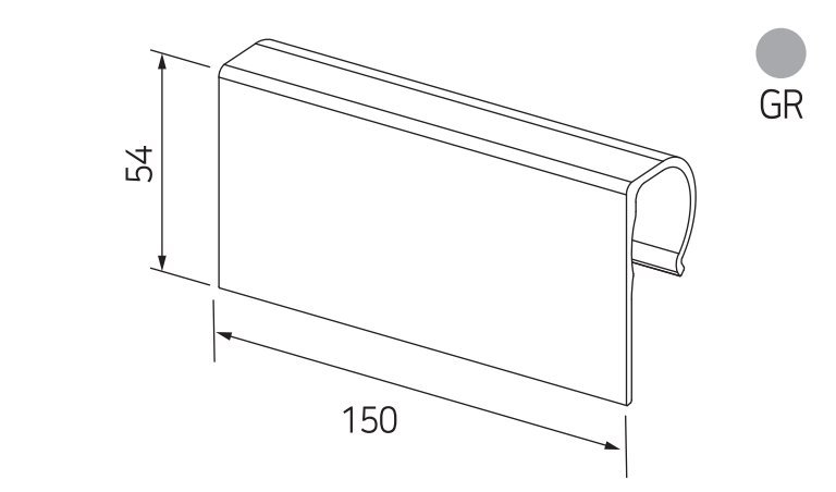 Držák na nalepovací štítek velikosti 150 x 54 mm.