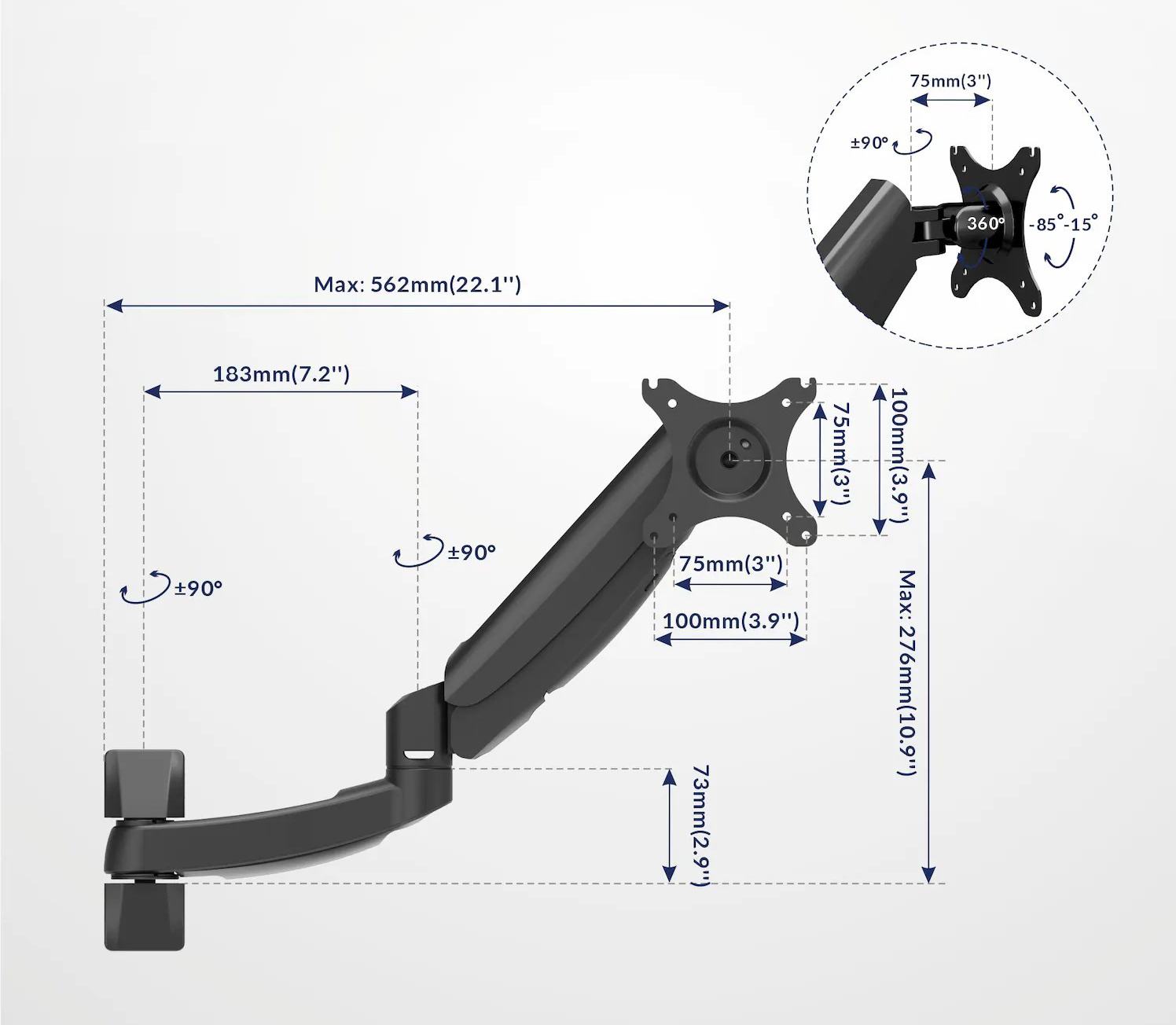 • kompatibilní s většinou monitorů díky standardu VESA 75×75 a 100×100