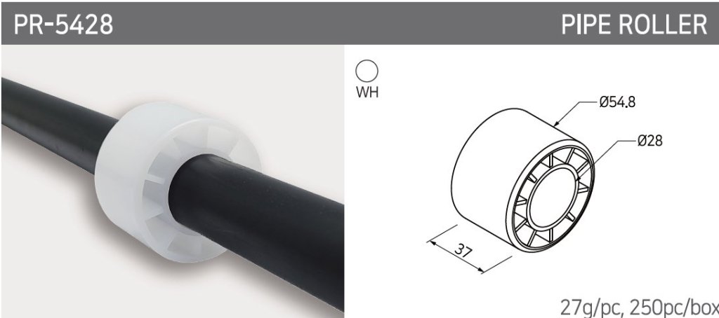 Plastové kluzné ložisko, typ PR-5428, barva bíla (WH), hmotnost 27 g. celý popis a parametry
