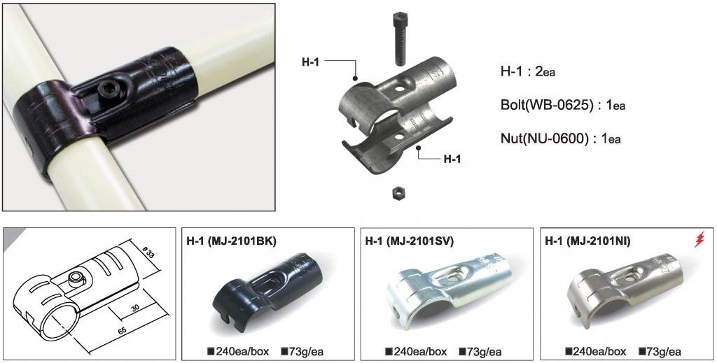Kovová spojka MJ-2101, barva černá, stříbrná nebo ESD provedení Nikl. Cena za 1 ks bez spojovacího materiálu. celý popis a parametry