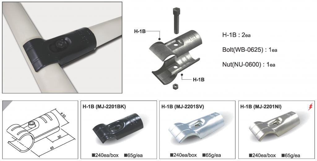 Kovová spojka MJ-2201, barva černá nebo stříbrná. Cena za 1 ks bez spojovacího materiálu. celý popis a parametry