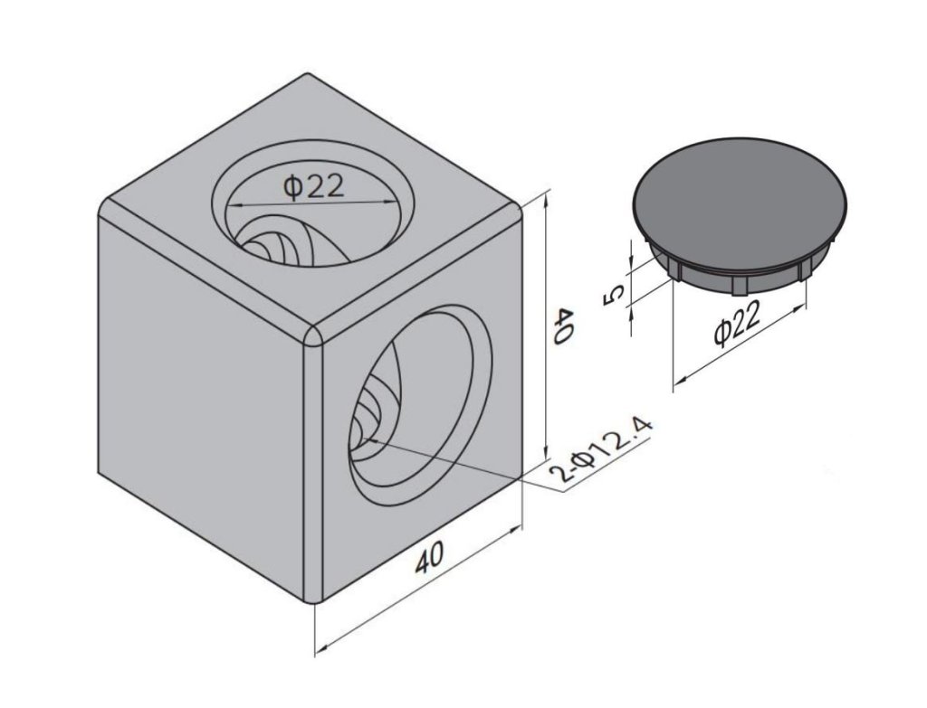 Krychlová spojka pro pravoúhlé spojení 2 hliníkových profilů. Rozměry 40x40x40 mm. celý popis a parametry