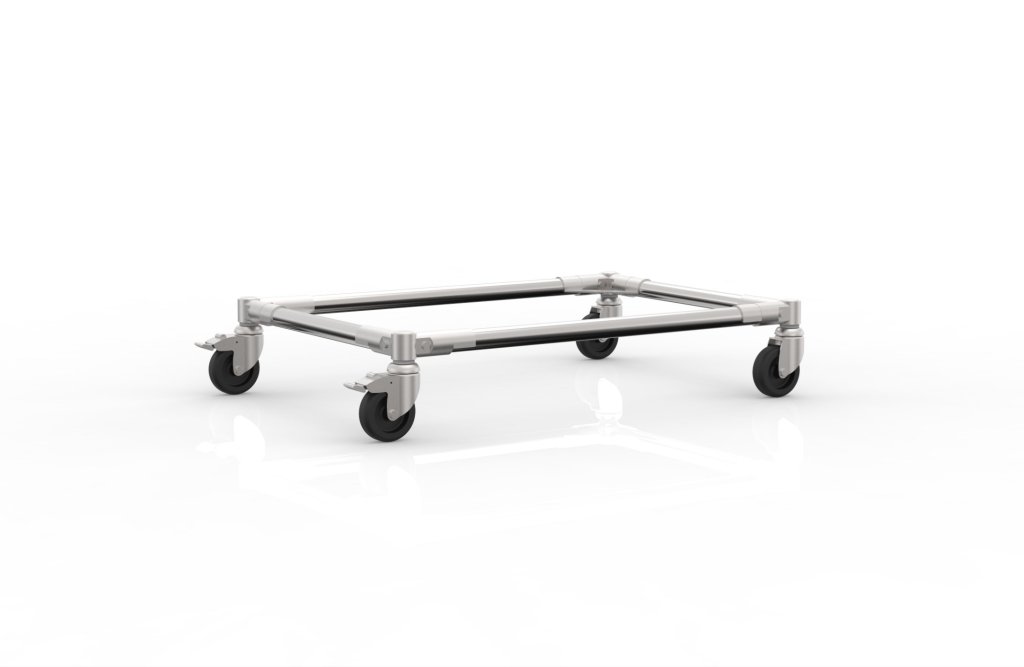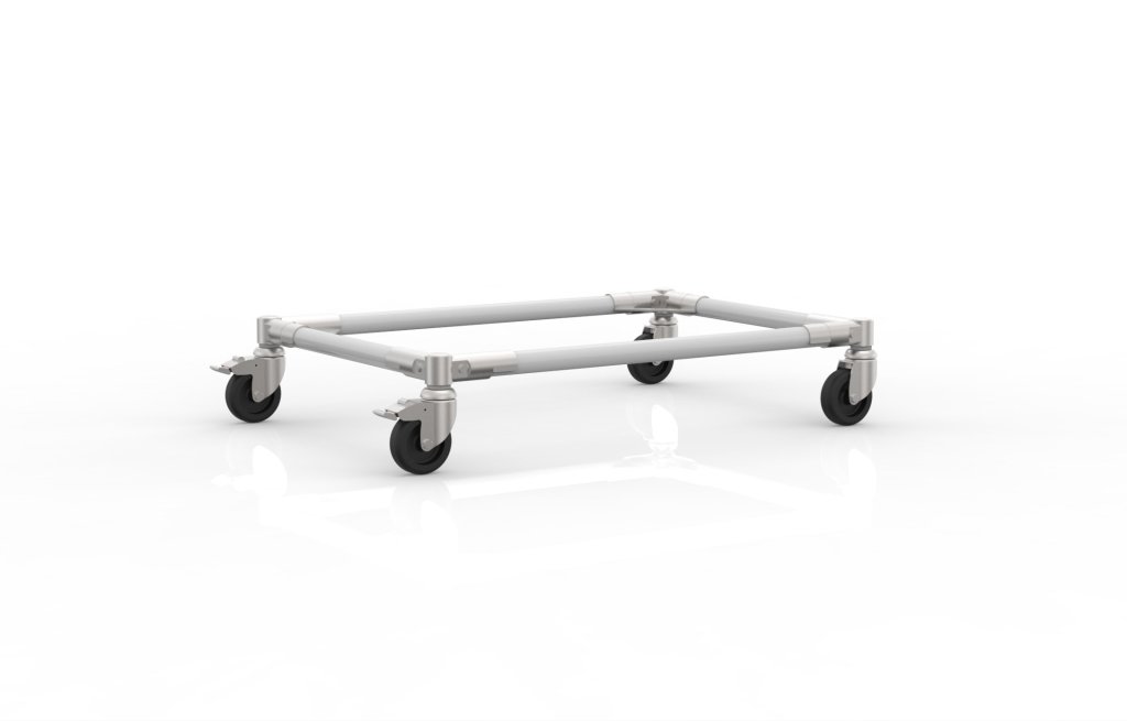 Manipulační podvozek vyrobený z trubkového systému je vhodný pro různé manipulační účely ve skladech i dílnách. Součástí podvozku jsou 2 otočná kolečka s brzdou a 2 otočná kolečka bez brzdy o průměru 75 mm, která umožňují snadnou manipulaci s předměty. Vnitřní rozměr je navržen pro bednu o rozměrech 600 x 400 mm. Rozměry 678 x 478 x 138 mm.