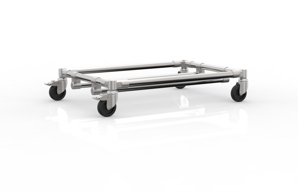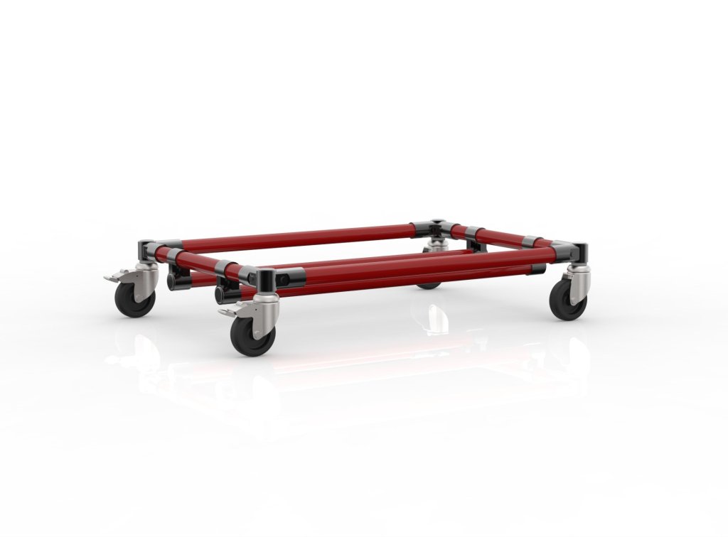 Manipulační podvozek vyrobený z trubkového systému je vhodný pro různé manipulační účely ve skladech i dílnách. Součástí podvozku jsou 2 otočná kolečka s brzdou a 2 otočná kolečka bez brzdy o průměru 75 mm, která umožňují snadnou manipulaci s předměty. Vnitřní rozměr je navržen pro bednu o rozměrech 600 x 400 mm. Rozměry 678 x 478 x 138 mm.