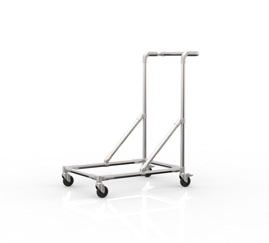 Manipulační podvozek s madlem vyrobený z trubkového systému je vhodný pro různé manipulační účely ve skladech i dílnách. Součástí podvozku jsou 2 otočná kolečka s brzdou a 2 otočná kolečka bez brzdy o průměru 75 mm, která umožňují snadnou manipulaci s předměty. Vnitřní rozměr je navržen pro bednu o rozměrech 600 x 400 mm. Rozměry 900 x 678 x 478 mm.