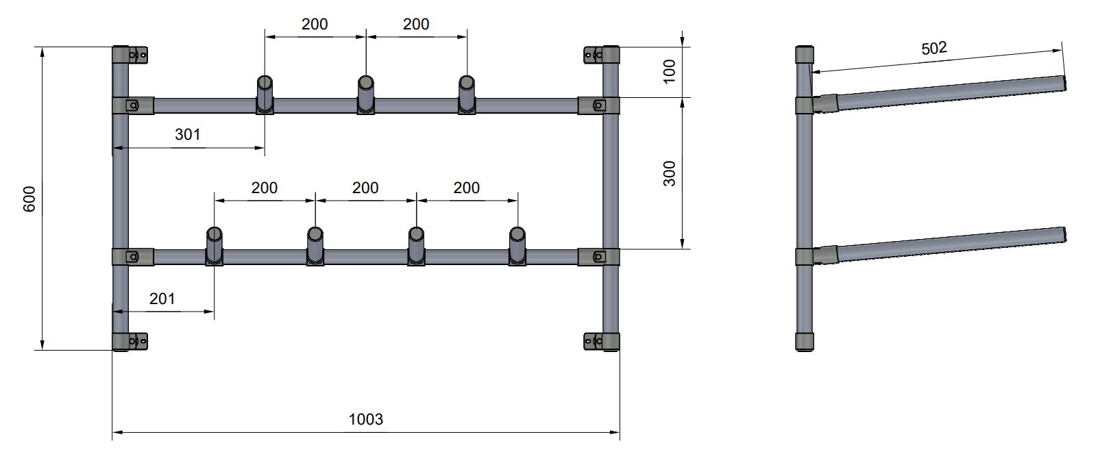 Aplikace na míru, všechny rozměry lze upravit dle potřeb zákazníka. Trubky jsou dostupné v několika barevných provedení a v ESD či nerezové variantě.