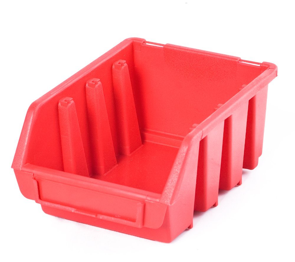 Plastový zásobník Ergobox 2, výška 75, šířka 116, hloubka 161 mm. Boxy jsou určené k zavěšení na lišty.