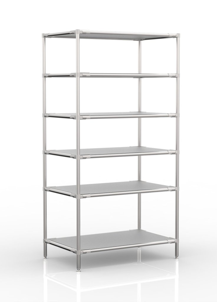 Regál z trubkového stavebnicového systému s šesti rovnými policemi je praktickým pomocníkem. Zajistí přehledné uskladnění zboží, celý popis a parametry
