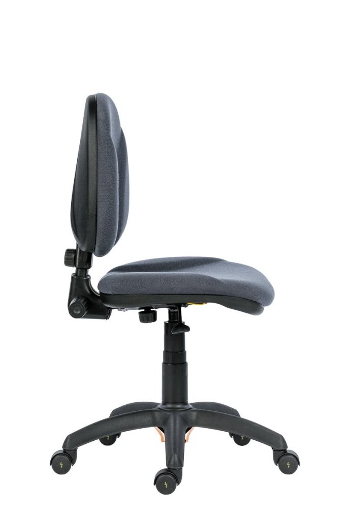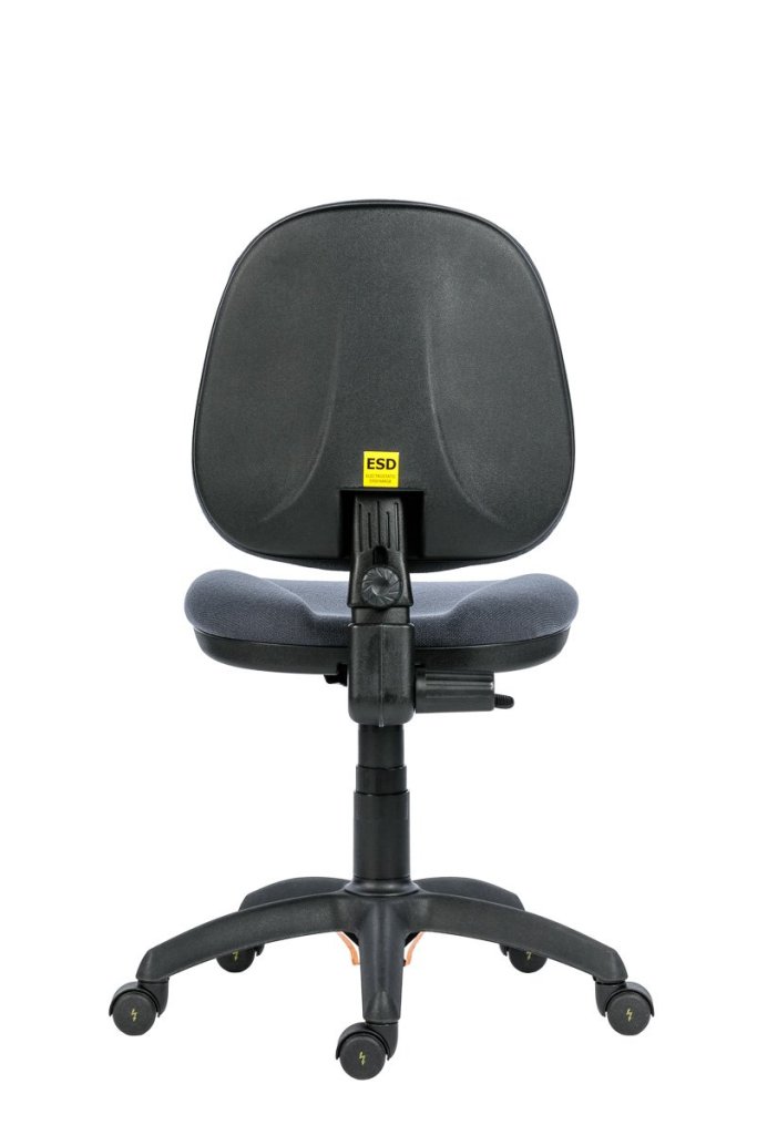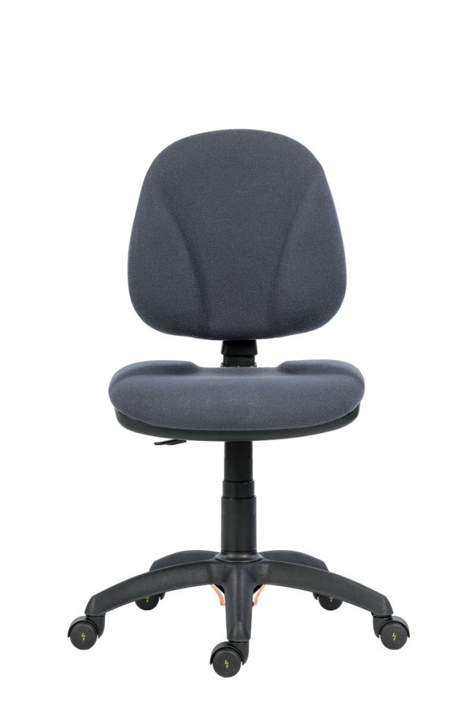 Kancelářská pracovní židle, konstruovaná tak, aby odváděla statickou elektřinu z pracoviště s přítomností elektronických komponentů a těkavých chemikálií. Všechny součásti židle, včetně speciální látky a koleček, jsou vodivé, měrný odpor menší než 0,1 MΩ, odstín potahu - tmavě šedá (antracitová), nosnost 120 kg.