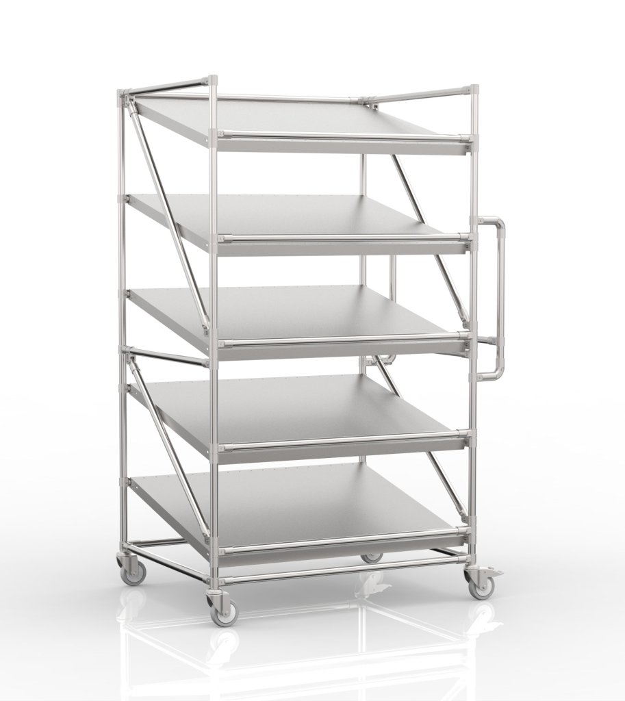 Vychystávací vozík s 5 šikmými policemi SP10080
