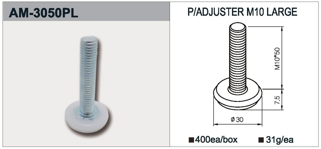 Rektifikační šroub AM-3050PL. Závit M10 x 50, celková délka 57,5 mm. celý popis a parametry