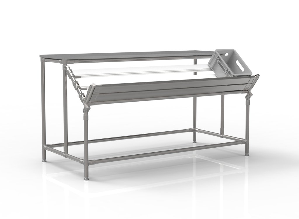 Univerzální stůl na přepravky. Barva konstrukce volitelná dle trubek. Při rovnoměrném zatížení nosnost 150 kg. Stůl je vhodný pro e-shopy, logistická centra a sklady. Rozměry 829 x 1500 x 720 mm.