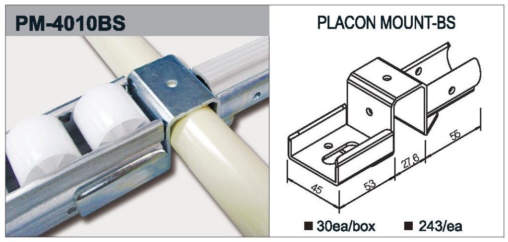 Úchyt válečkové tratě typ PM-4010BS. Pro dráhy šířky 40 mm s ocelovým tělem. celý popis a parametry