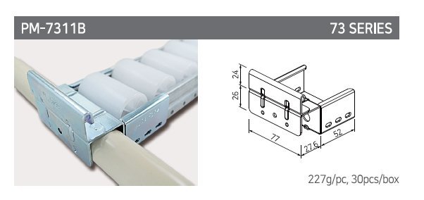 Úchyt válečkové tratě typ PM-7311B. Pro dráhy šířky 73 mm s ocelovým tělem. celý popis a parametry