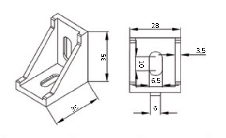 Úhelník s úhlem 90° pro spojování profilů. Rozměry 35 x 28 x 35 mm. Spojovací materiál není součástí balení. celý popis a parametry