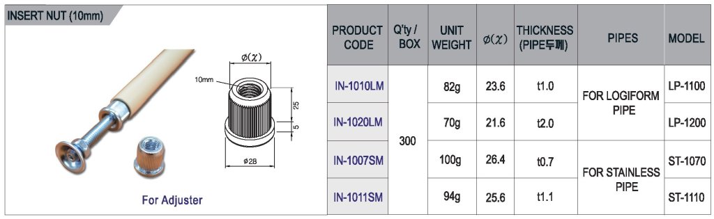 Vnitřní ocelová zátka se závitem M10, typ IN-1011SM. Pro nerezové trubky Logiform typ ST-1110 s tloušťkou stěny 1,1 mm. celý popis a parametry
